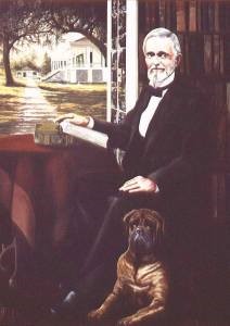 Fond as Mr. Davis was of his peafowls, his especial pet was his dog, Traveler, the same name as Robert E. Lee’s famous horse. This dog had a very wonderful history. Mr. (Samuel W.) Dorsey, husband of Mrs. Sarah Dorsey, from whom Mr. Davis purchased Beauvoir, had traveled all over the world. On the Bernise Alps, Mr. and Mrs. Dorsey purchased the young puppy, whose father was a Russian bulldog. The puppy was named Traveler. They carried the young dog everywhere with them, and he was trained to be Mrs. Dorsey’s bodyguard.